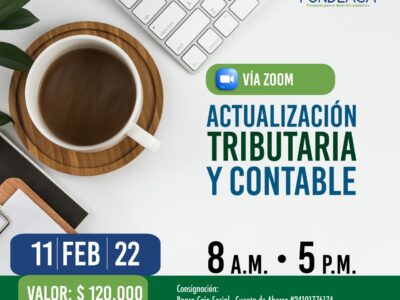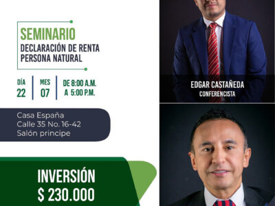 Actualización tributaria y contable Conferencistas: Edgar Castañeda, Andrés Moreno, Lucero Téllez y Cesar Ánzola. Inversión: $ 120.000 Fecha: 11 de febrero del 2022 Vía Zoom