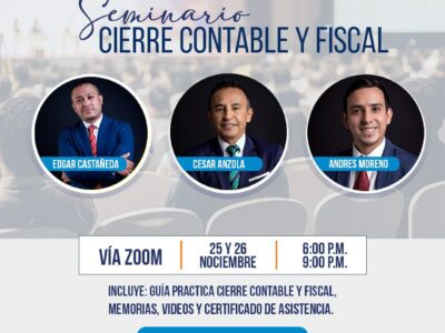 Seminario Cierre Contable y Fiscal Charlas: Cierre Contable y Fiscal Conferencistas: Edgar Castañeda Cesar Anzola Andres Moreno Fecha: 25 y 26 de noviembre Temario: Tenga en cuenta los aspectos mas relevantes para un cierre contable y fiscal Inversión: $ 150.000